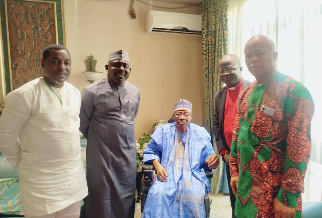 Former Military President of Nigeria, Ibrahim Badamasi Babangida(middle)Chairman, Most Rev. Dr. Bulus Dauwa Yohanna (immediate right) and other members of his delegation