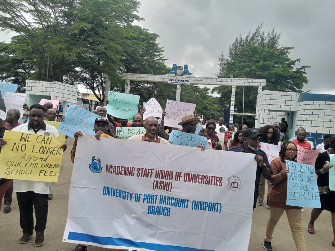UniPort ASUU Rejects FG’s Loan Scheme, demads renegotiation of 2009 FGN-ASUU Agreement •As members demonstrate across university campuses