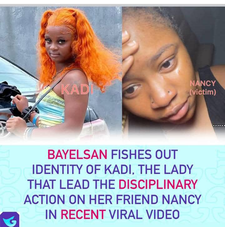 According to her, the attackers identified as Becky, Blessing, Favour and Miracle, carried out the assault while one of them recorded the video. “Miracle was the one videoing, Becky was the one pulling off my clothes, Kadi was the one cutting my hair with knife, threatening to stab me if I say a word. She was even the one that blew my eyes,” Nancy recounted.