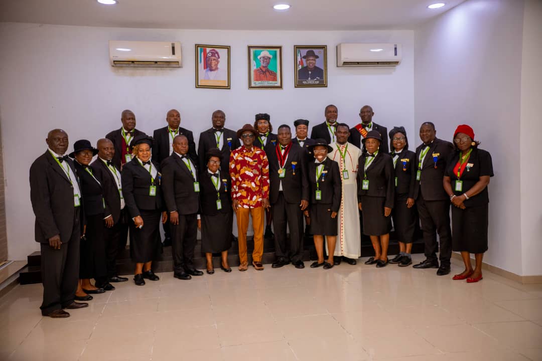 Dignitaries who accompanied the President on the courtesy visit include, Vice President, Council of Knights and former General Manager, Radio Bayelsa, Dame Anne Koko-Abidde, the immediate past Head of Service, Dame Biobelemoye Charles-Onyeama, and one time Acting Chief Judge of Bayelsa State, Justice Margaret Akpomiemie (Rtd).