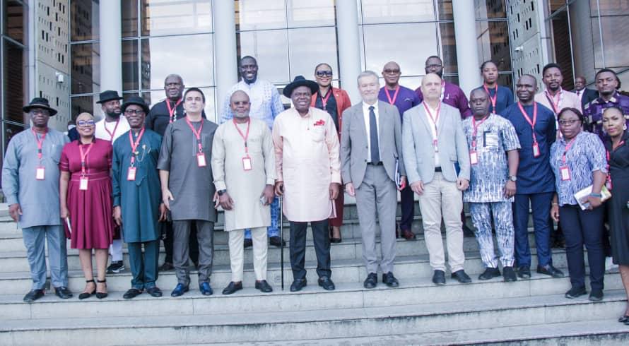 Bayelsa State, governor ,Senator Douye Diri,(middle, flanked by European delegation led byAmb. Gautier Mignot