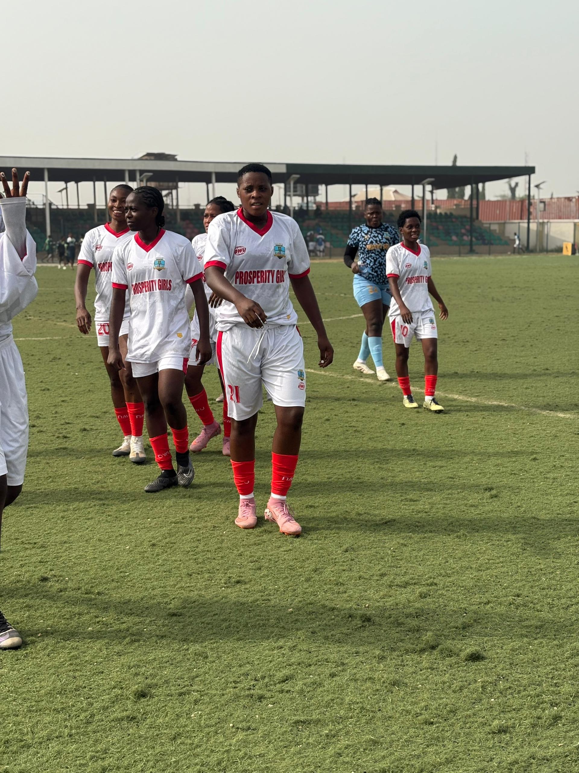 It was a blow for the Prosperity Girls who dominated the first half, but capitulated in the dying minutes and the visitors levelled the score through Yemilo Blessing to end the first half 1-1.