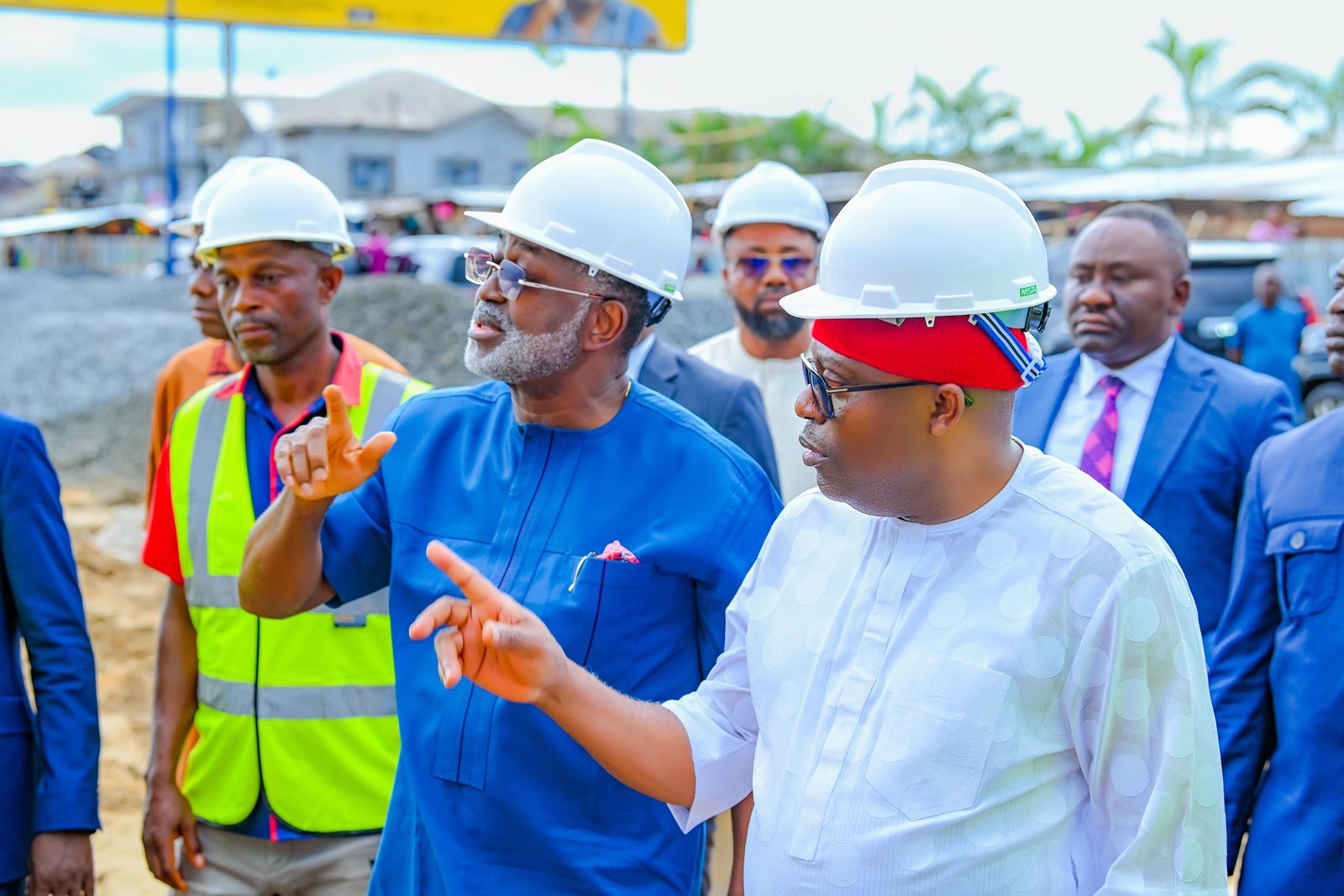 The governor was conducted round the project site by Architect Opiribo West, the site engineer for E.S.T Masters Construction, the firm handling the project, alongside Hon. Tonye Belgam, the State Commissioner for Special Projects.